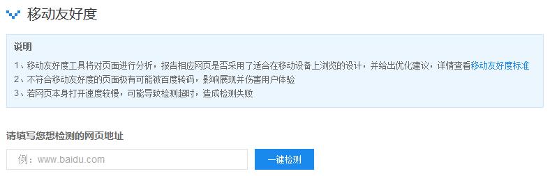 那么,如何知道您的网站是否可以适应移动端,为用户提供无障碍的浏览方式呢,其实花个一两分钟检测一下就可以了,这里我们用到的,是百度站长平台的【移动友好度检测】功能。